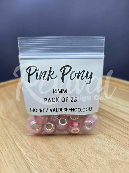 14mm Crackle Spacers - Pink Pony - Pack of 25
