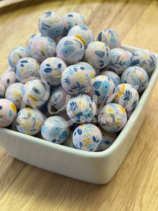 15mm Patterned Silicone Bead - Among The Wild Flowers