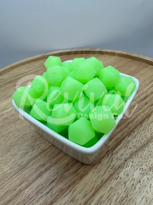 Green Glow - 14mm Glow Hexagon Bead
