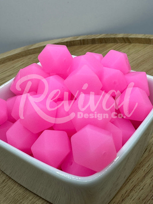 Pink Glow - 14mm Glow Hexagon Bead