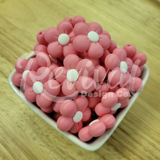 Preppy Pink Daisy - Silicone Focal Bead