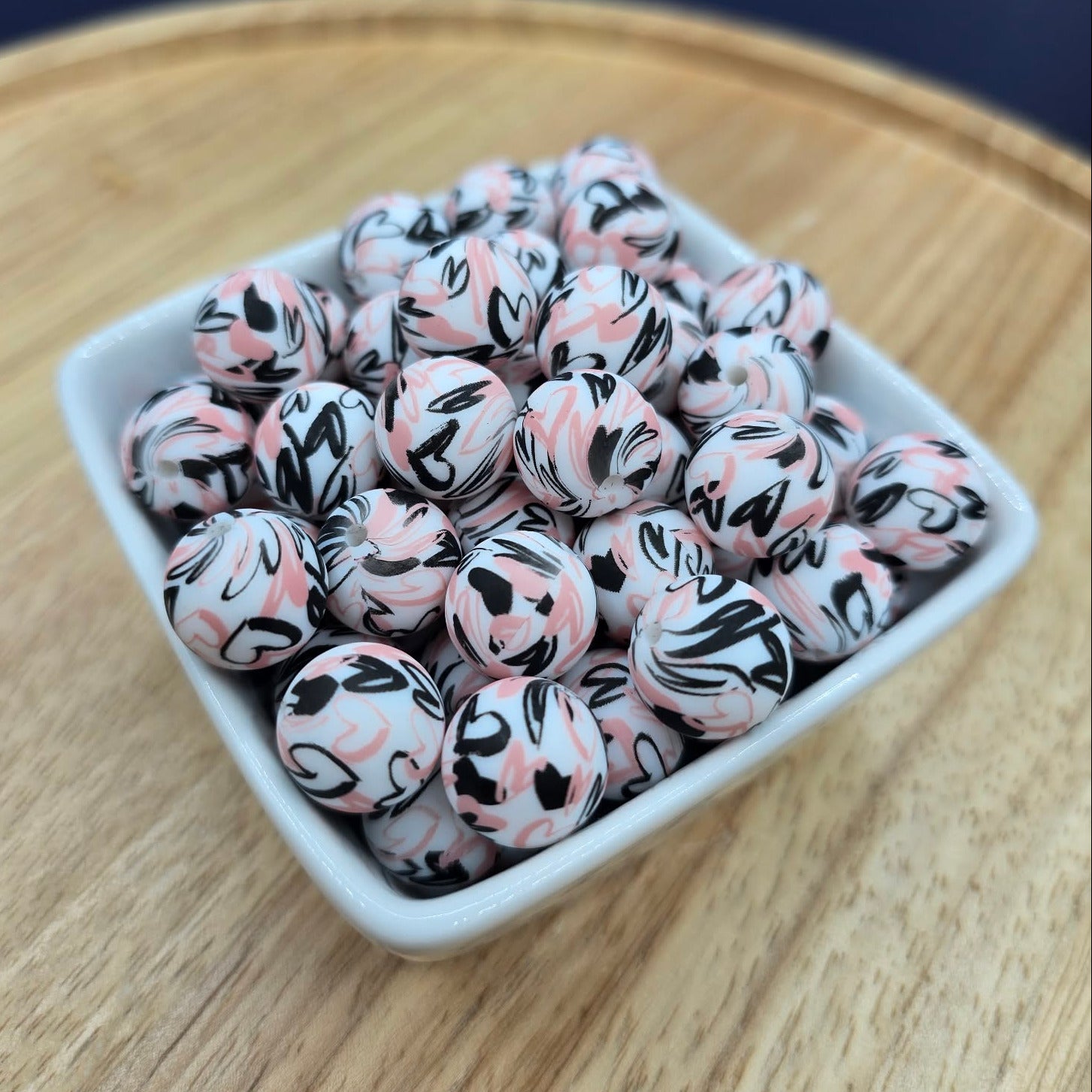 15mm Patterned Silicone Bead - Graffiti Heart