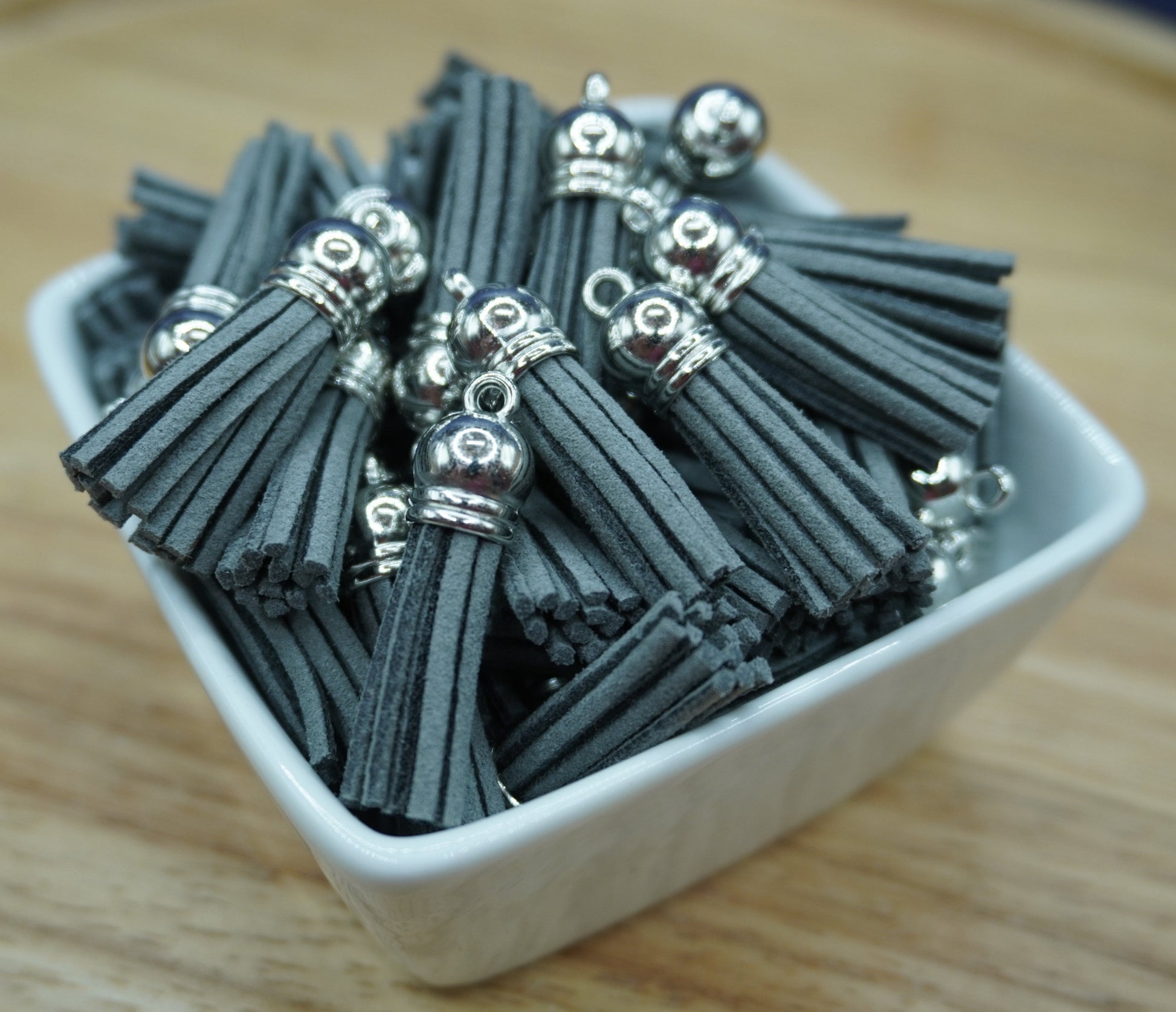 This tassel is a versatile and stylish crafting accessory. Crafted with a silver top and eyelet, it adds a touch of elegance to any project or keychain. Perfect for various crafts and multi-functional use, the storm tassel is a must-have for any DIY enthusiast.